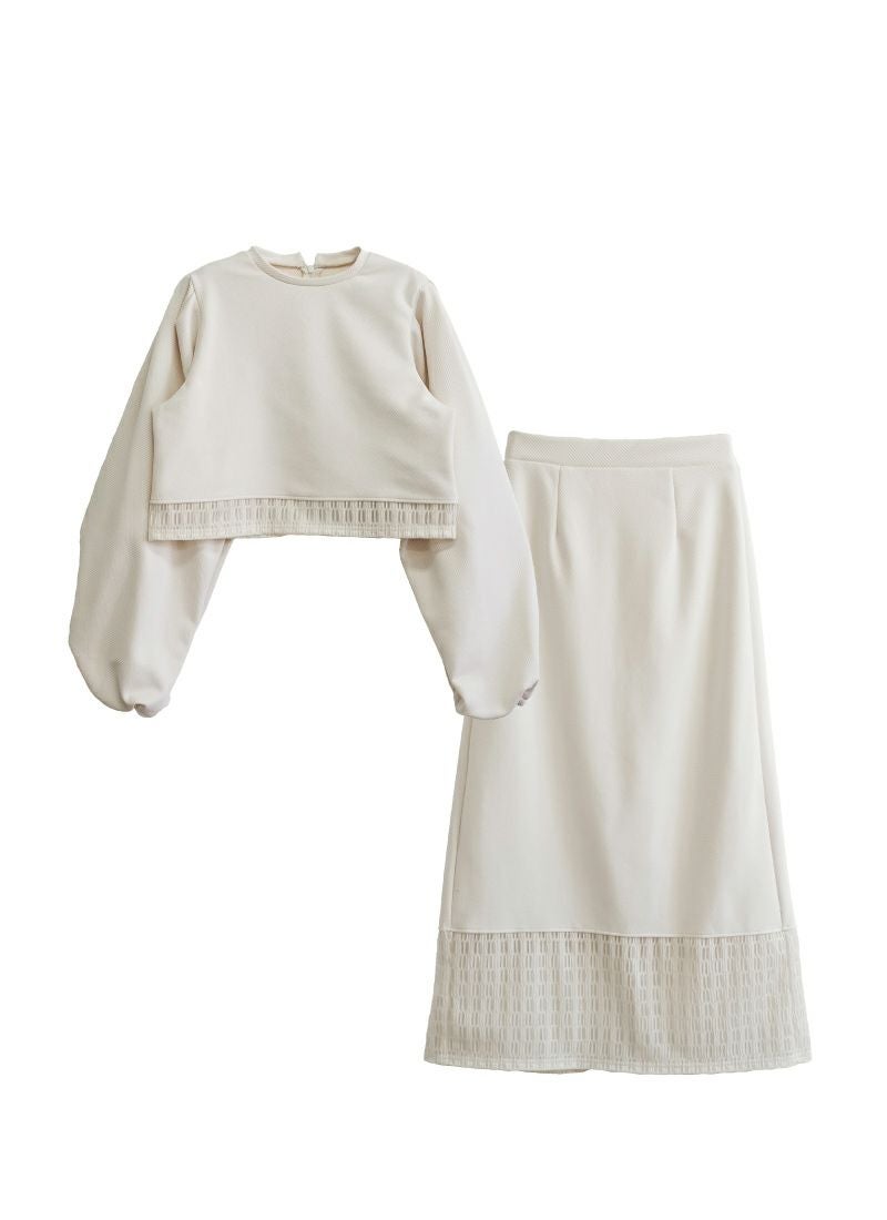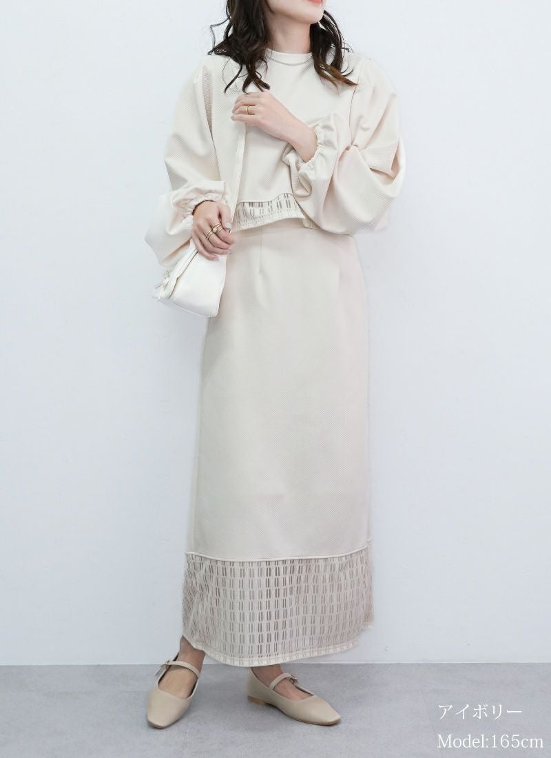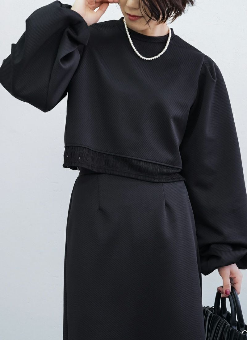 【新作おすすめ】 カットツイルシアー切替トップススカートセット