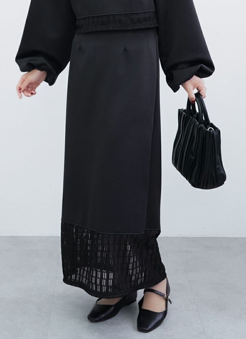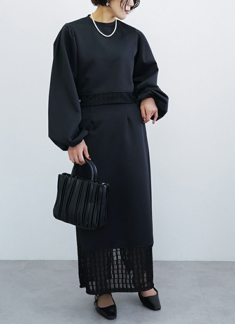 revoam【甘さ控えめ、大人のエレガンス。異素材のコントラストで魅せる、上級フェミニンスタイル】 【20%OFF】タフタ×チュールドッキングワンピース