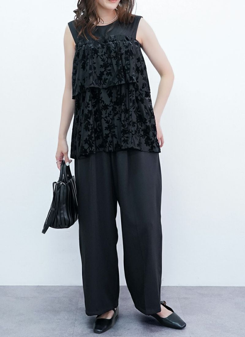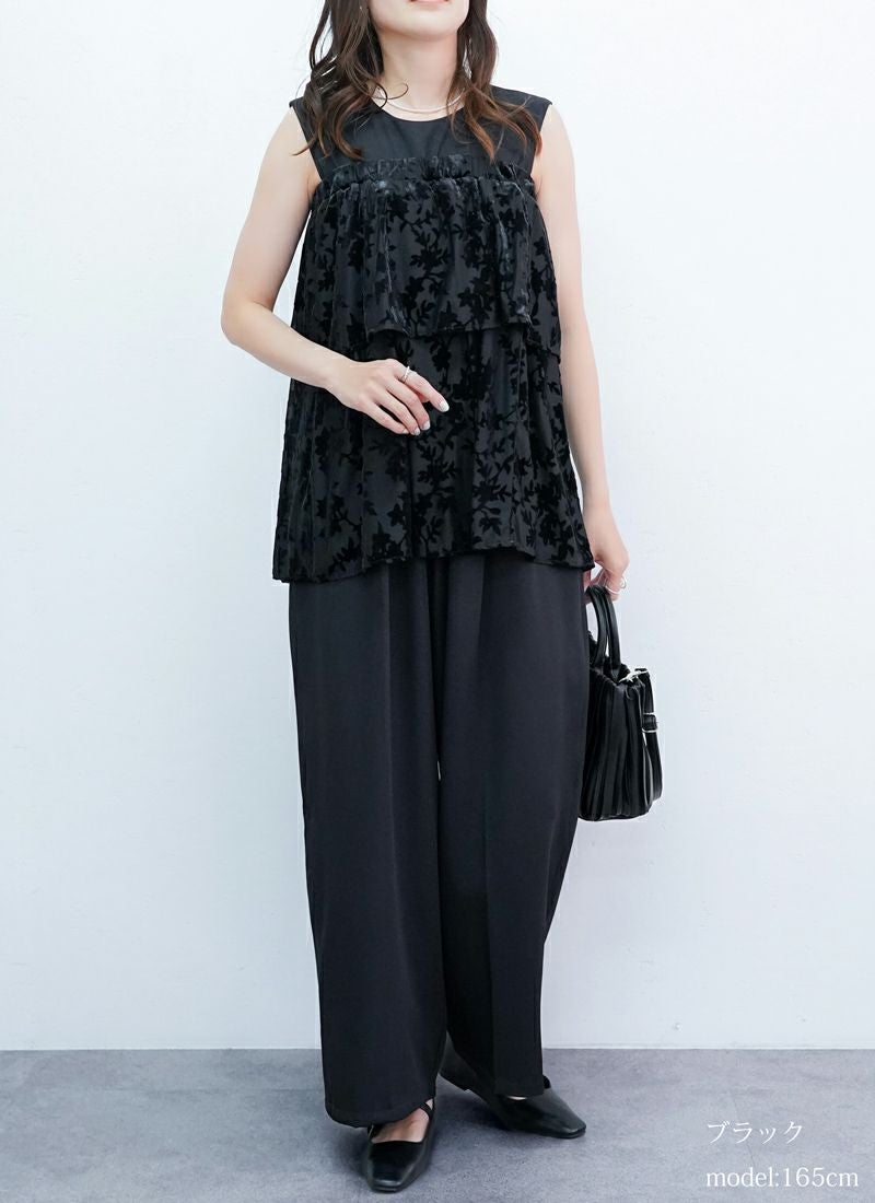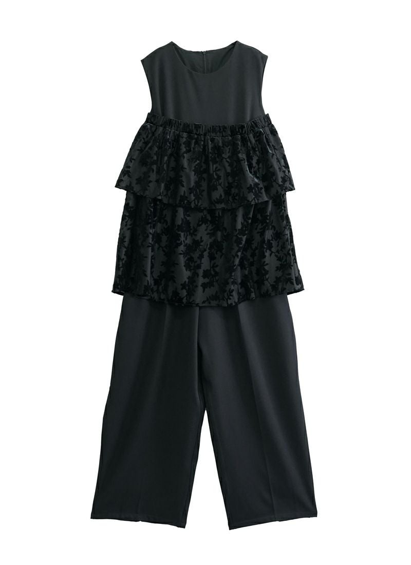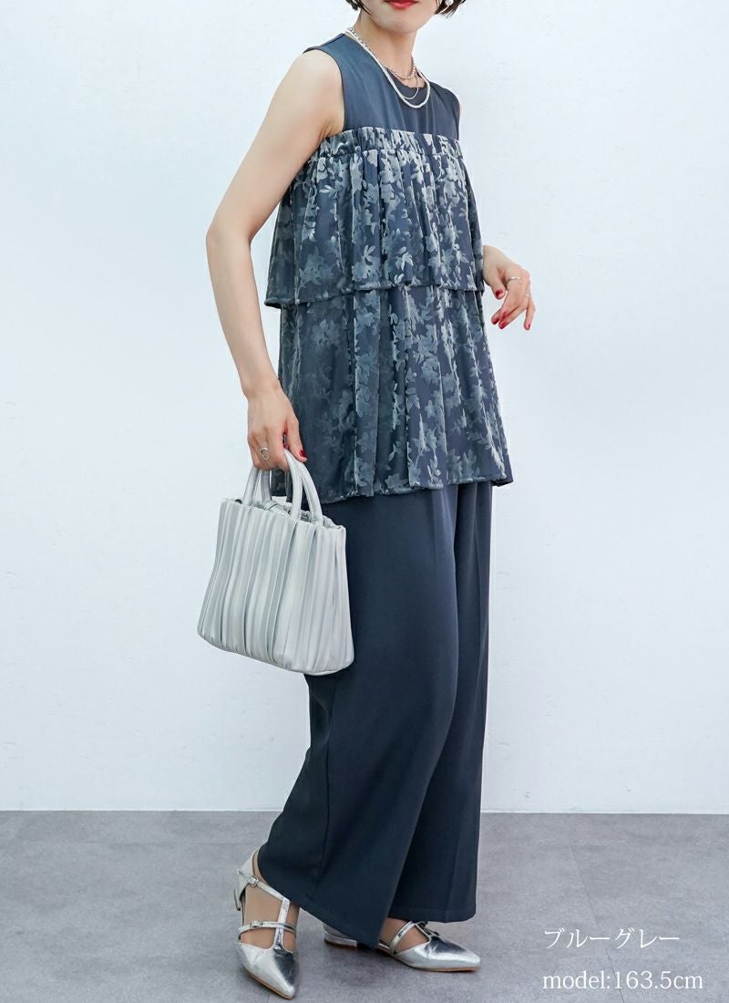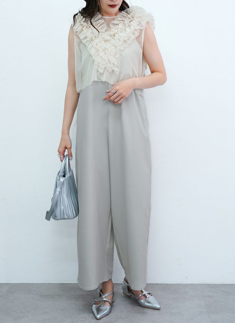 【新作おすすめ】 【15%OFF】チュールフリルベスト×リネンタッチオールインワンSET