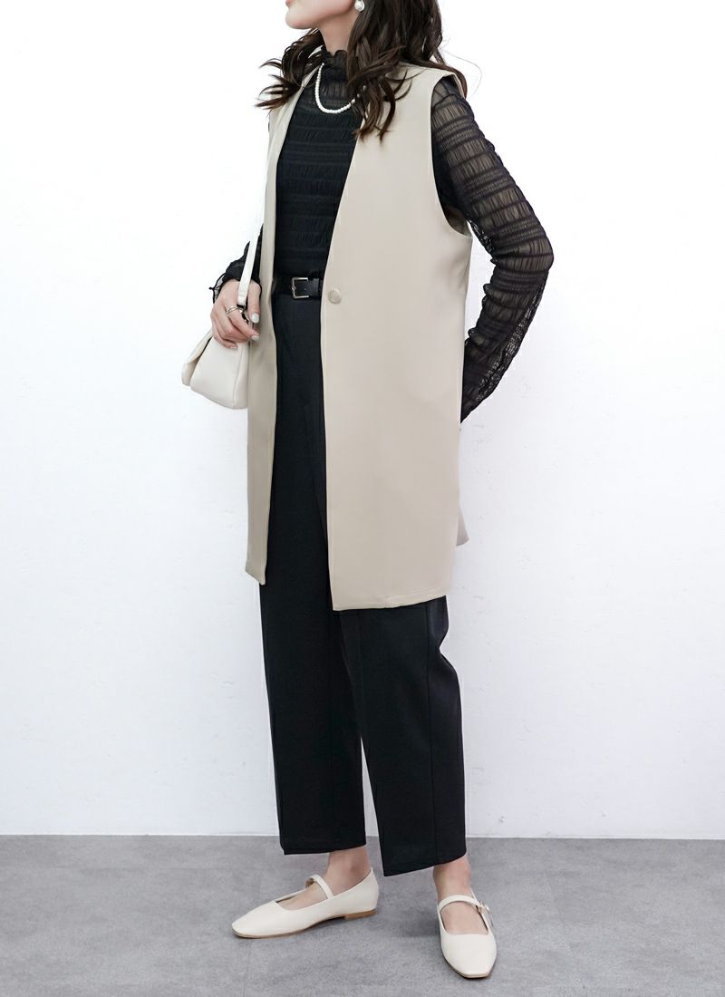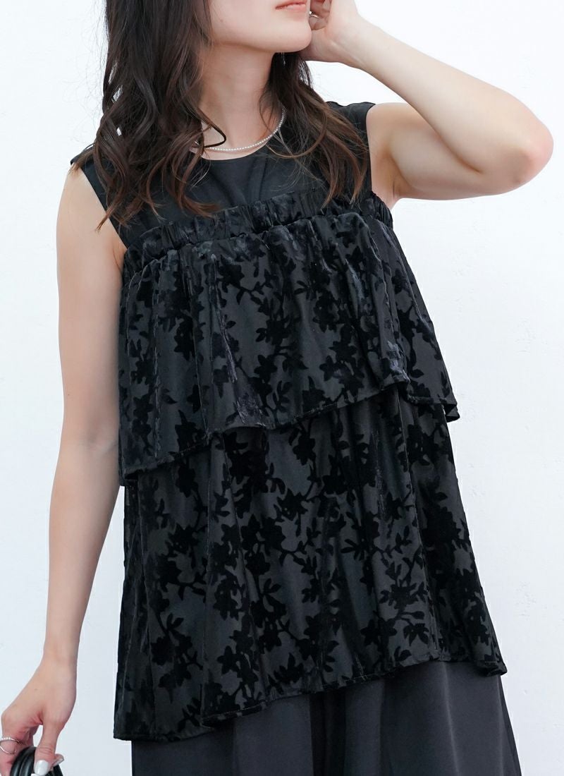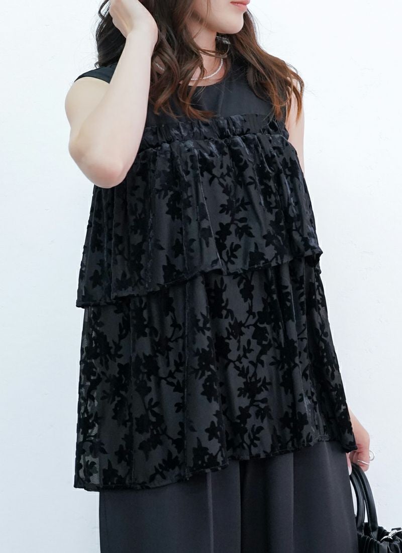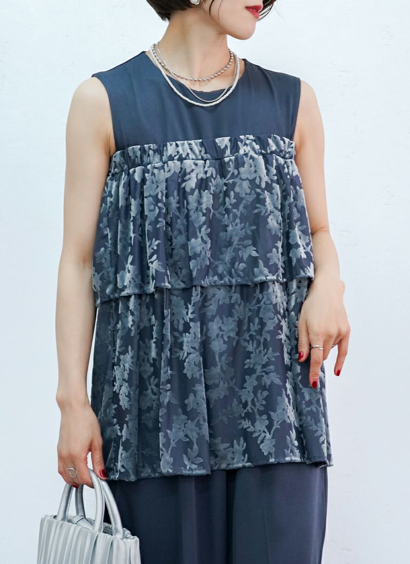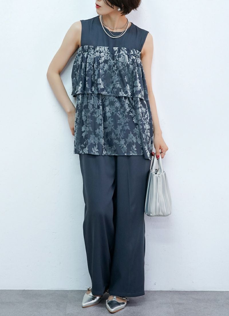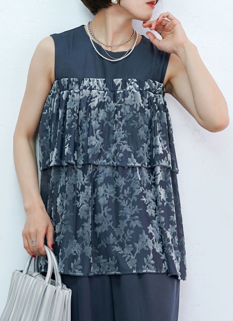 【新作おすすめ】 【15%OFF】チュールフリルベスト×リネンタッチオールインワンSET