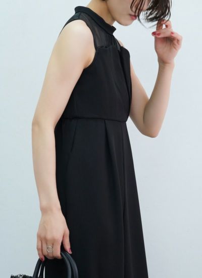 シアー素材の切替が程よい抜け感を演出してくれるオールインワン。