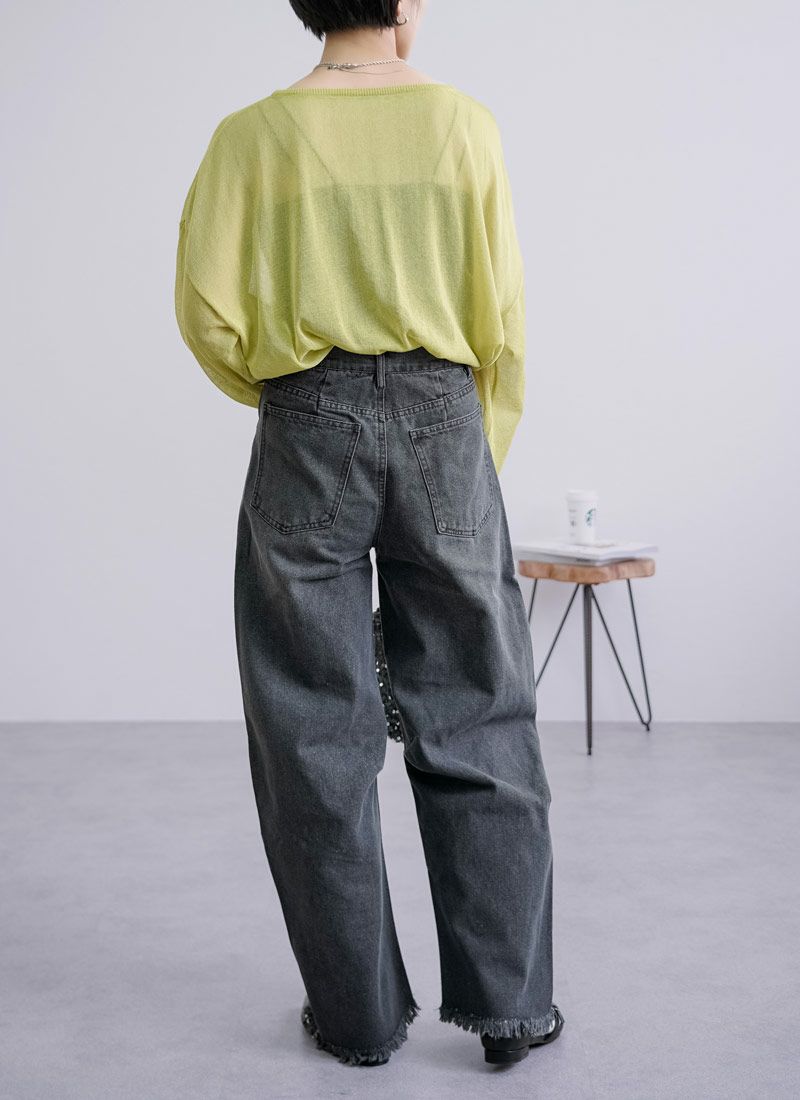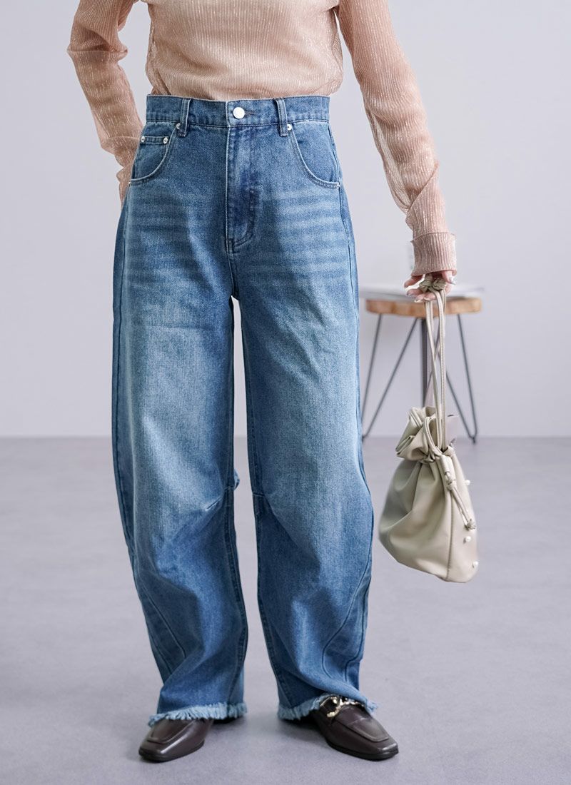 revoam【抜け感と女らしさを叶えるカーブデニム。ゆるっと感と絶妙シルエットで、大人のデニムコーデを格上げ】 【10%OFF】裾フリンジデニムカーブパンツ