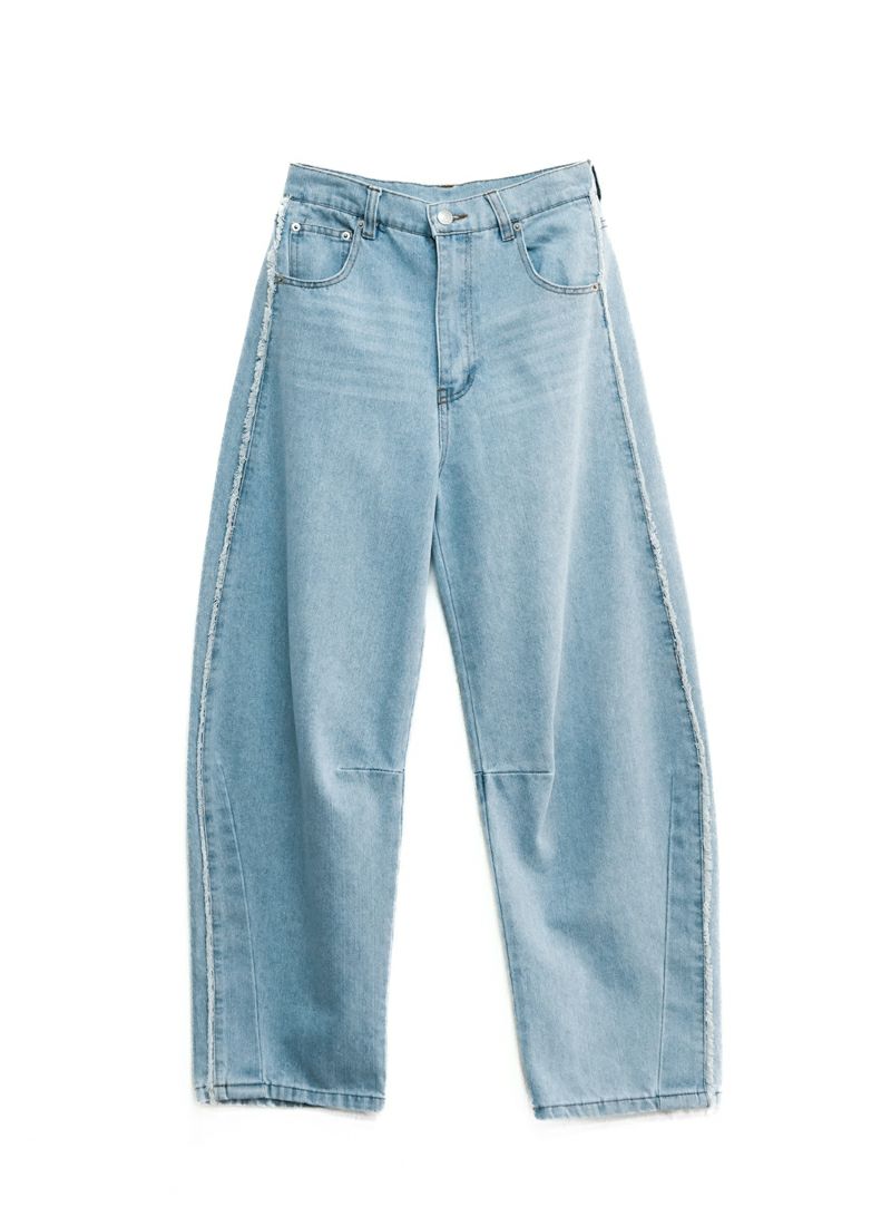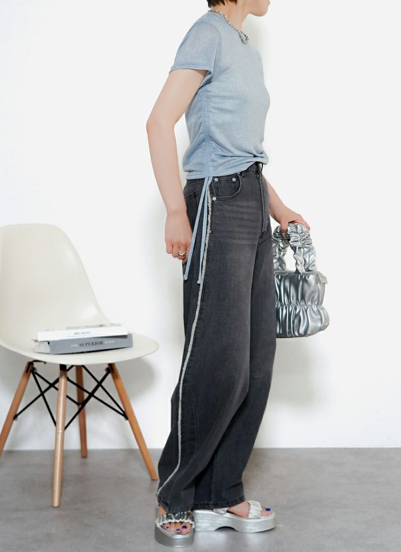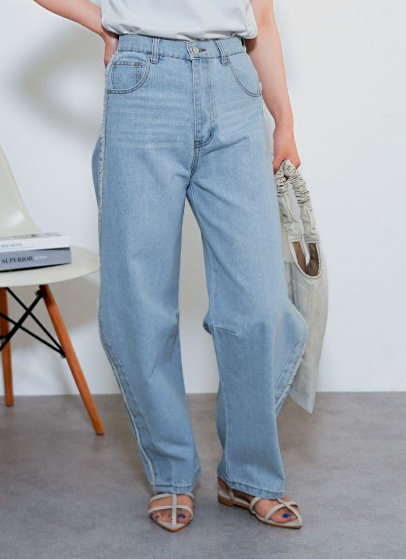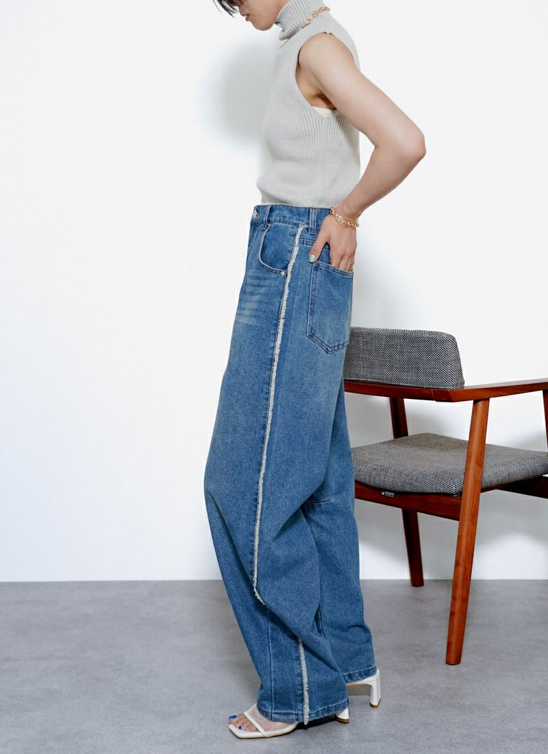 revoam【ゆるっと感が、こなれの鍵。ラインで魅せる旬バランス、楽しておしゃれが叶う一本】 【10%OFF】サイドフリンジデニム カーブパンツ