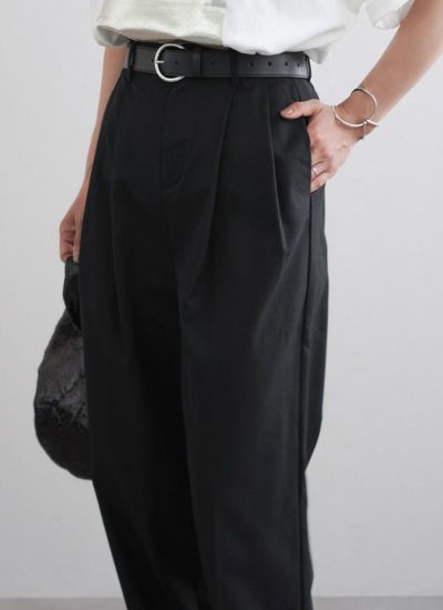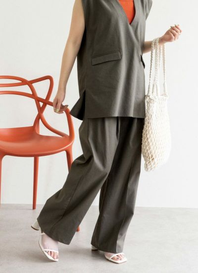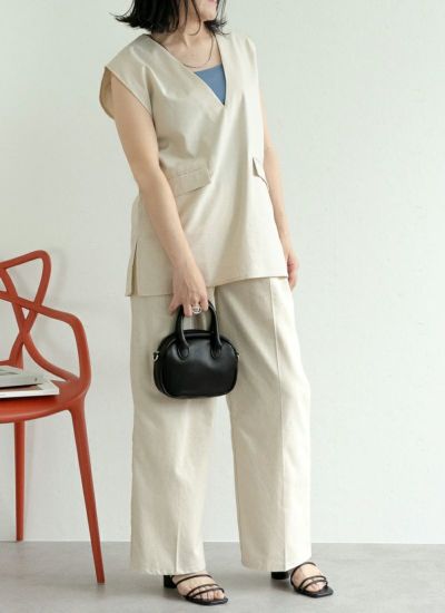 revoam【リネン風素材&ツータックで美脚見え。Tシャツもブラウスも好相性の万能パンツ】 【35%OFF】リネンライクツータックパンツ