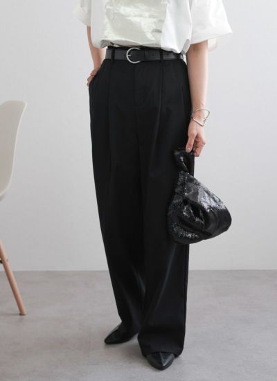 大人のきれいめスタイルに1本は持っておきたいワイドスラックスです。
