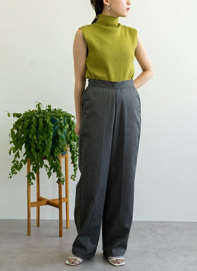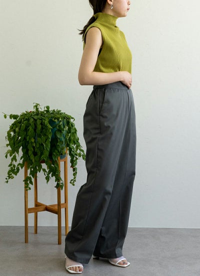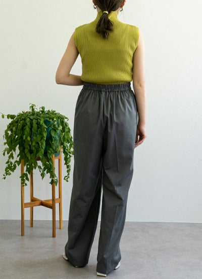 ウエストはゴム仕様で着脱も容易、使い勝手も抜群なストレートパンツ。