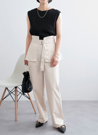 ペプラムベルトストレートパンツ