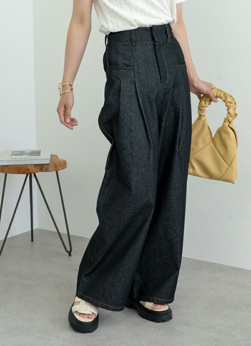 【新作おすすめ】 【30%OFF】デニムサイドポケットタックパンツ
