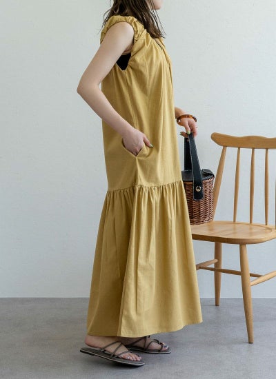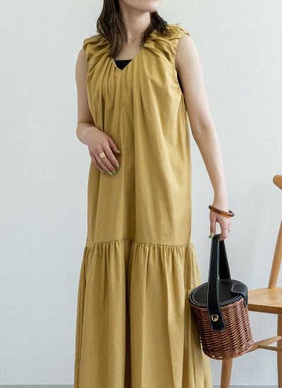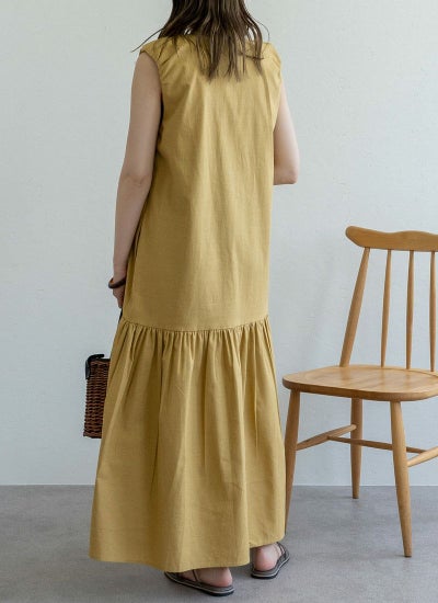 綿ツイルノースリギャザーワンピース