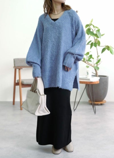 オーバーサイズでルーズ感を演出したニット。