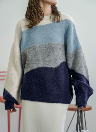ウール混モヘアタッチ配色プルオーバー revoam レヴォーム