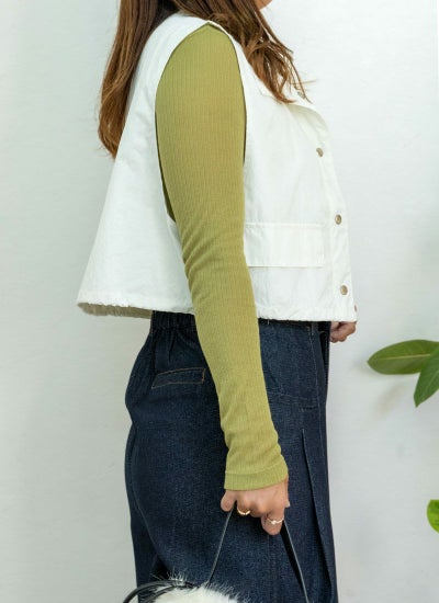 revoam【羽織るだけで今っぽく。クロップドベストで旬のシルエットに】 【40%OFF】タフタクロップドミリタリーベスト