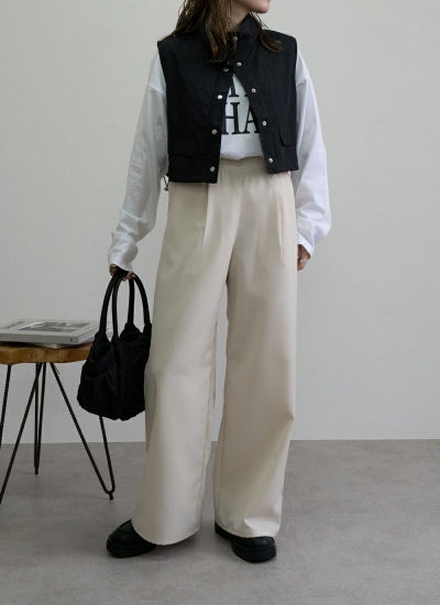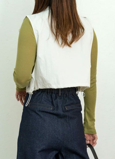 裾のドロストコードを絞ることでシルエットの変化を楽しめるうえ、クロップド丈のためどんなアイテムに合わせてもバランス良く決まるのが嬉しいポイント。