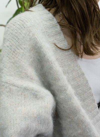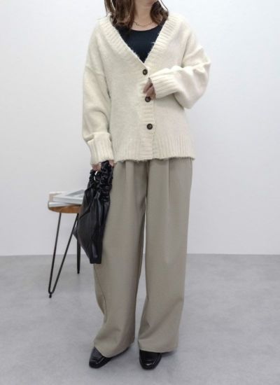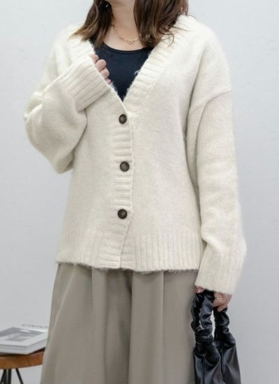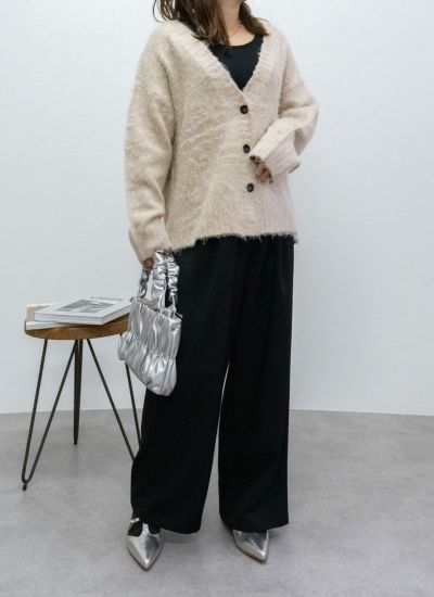 今年のトレンドアイテム、1枚で存在感あるシャギーニットカーディガン。