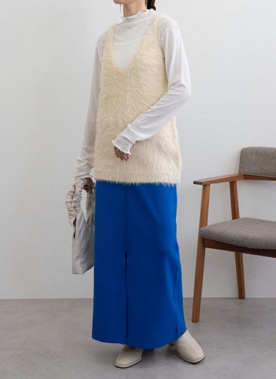 すっきりとした美シルエットで、カジュアルアイテムとしても合わせやすいニットスカートは重宝するアイテム。