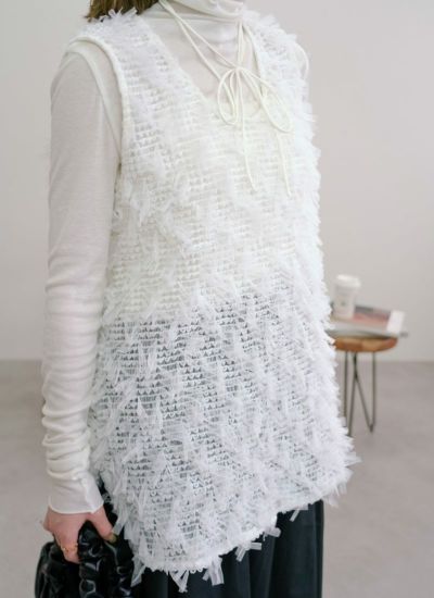 表面感のあるチュールジャガード素材がトレンドライクなベスト。