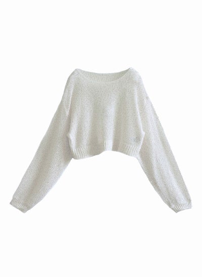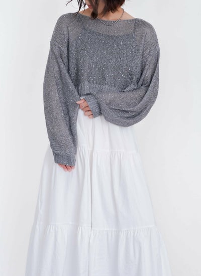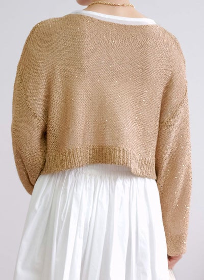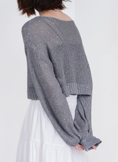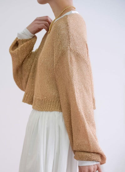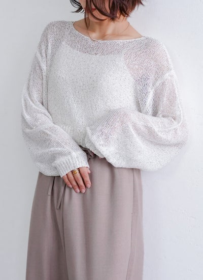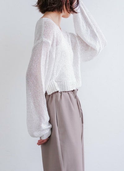 revoam【さりげないラメ感が、大人の可愛さを引き立てる。ゆるっとシルエットのショートニット】 【50%OFF】ラメスパンコールショートニット