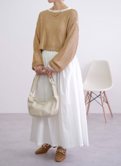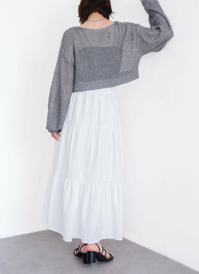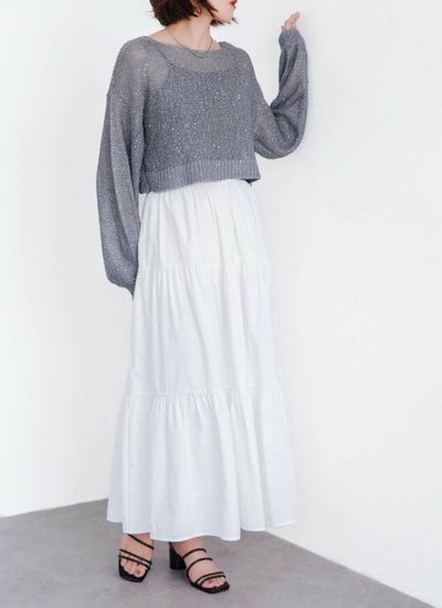 動くたびにきらめくスパンコールとラメ糸が旬なムードを演出。