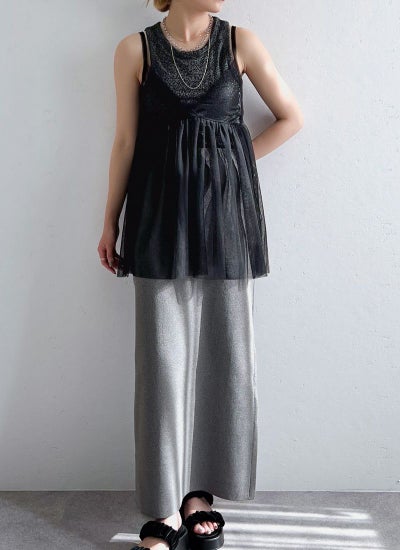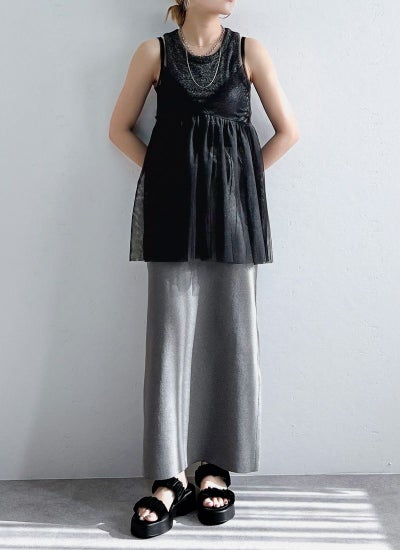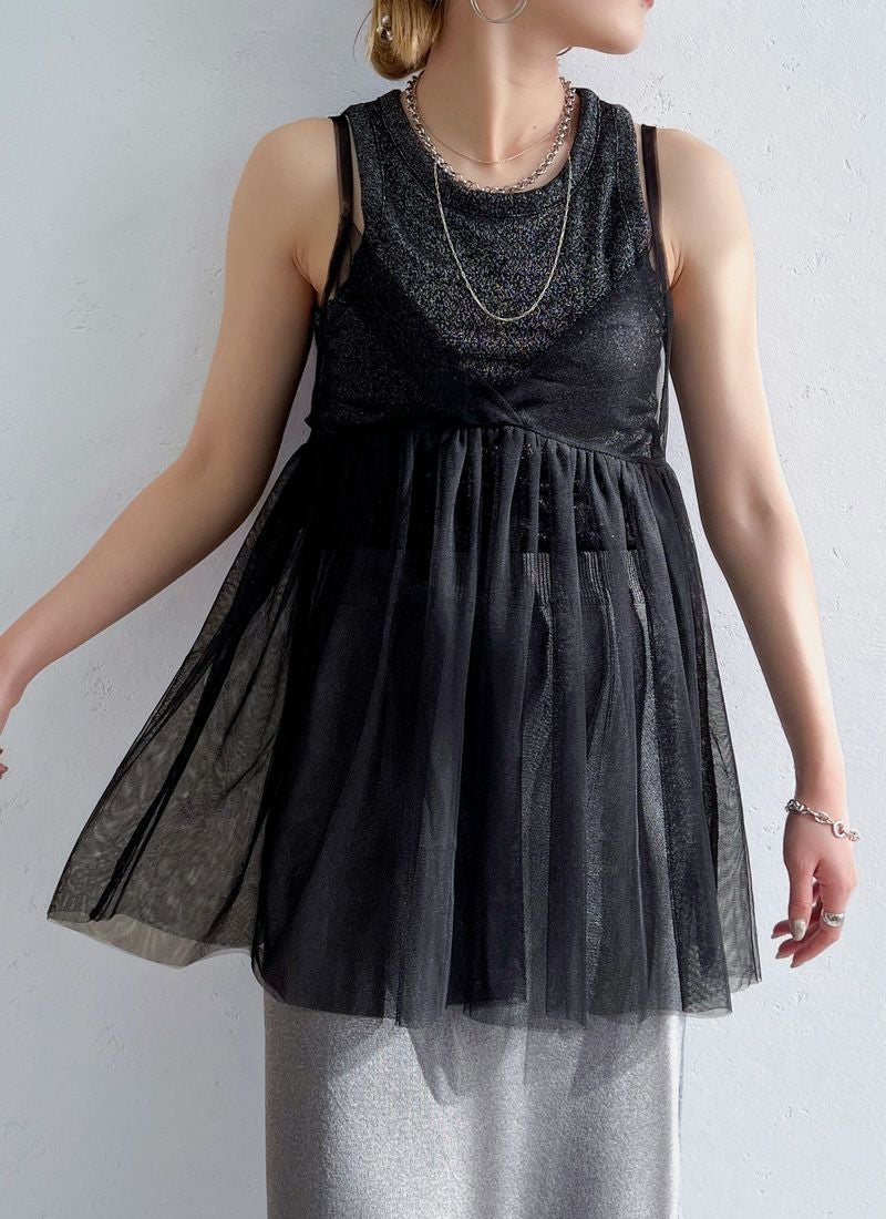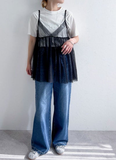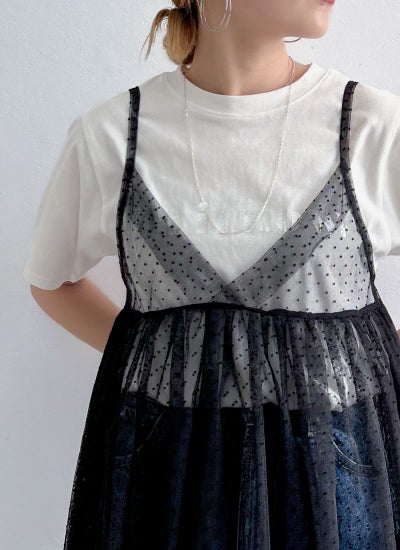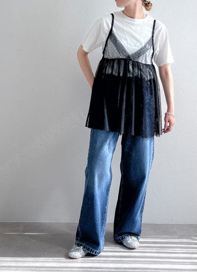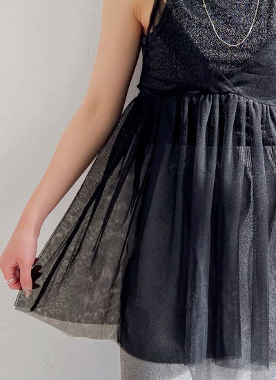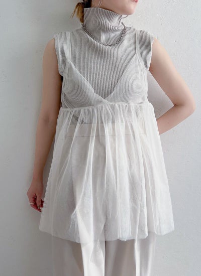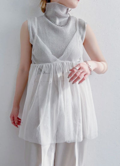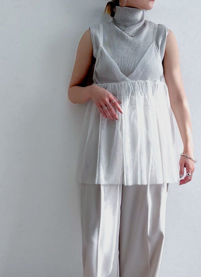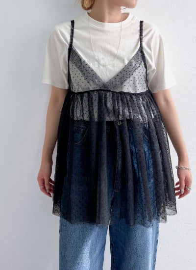 旬のスタイリングが叶うチュールキャミビスチェ。