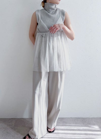 今季トレンドのチュール素材でコーデを格上げしてくれます。