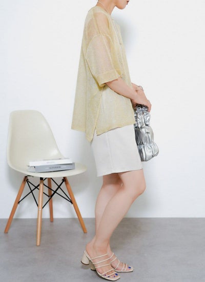 ゆったりとしたルーズシルエットにスリット入りで