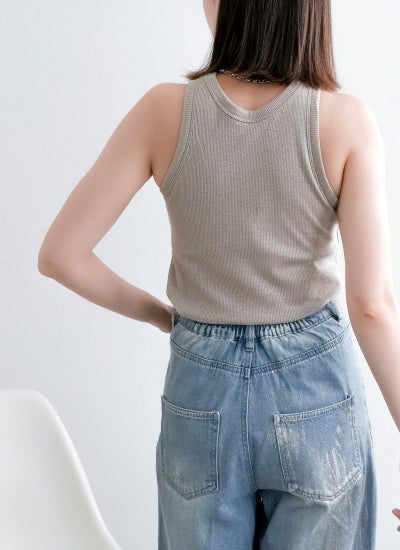 revoam【ラメのきらめきで、ヘルシーな夏スタイルに。アメスリ×カップ付きで、ブラいらずの抜け感タンク】 【20%OFF】カップ付きラメアメスリタンク