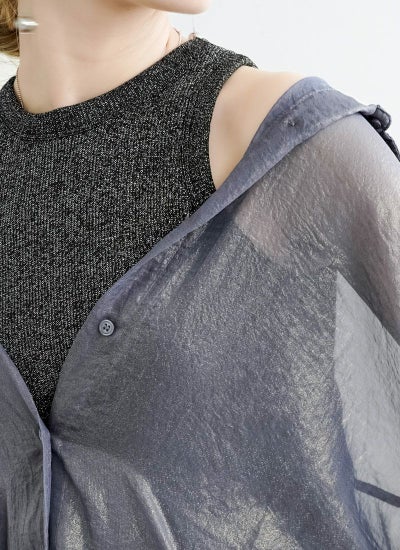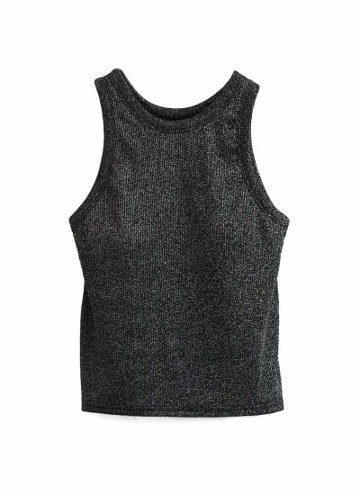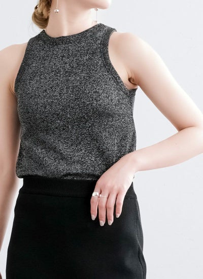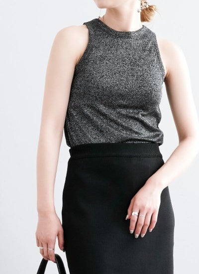 きらめくラメでトレンドを取り入れつつ、カップ付きで1枚で着られる手軽さが魅力的です。