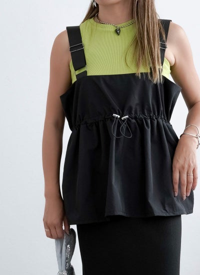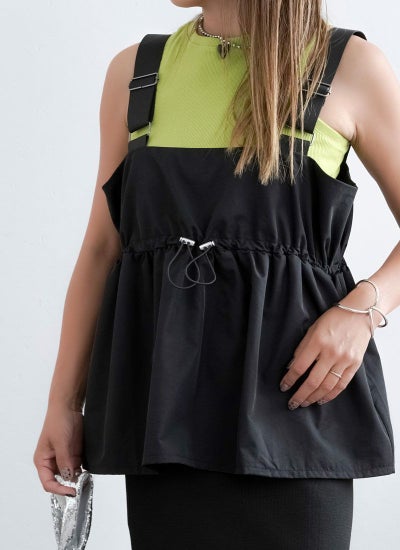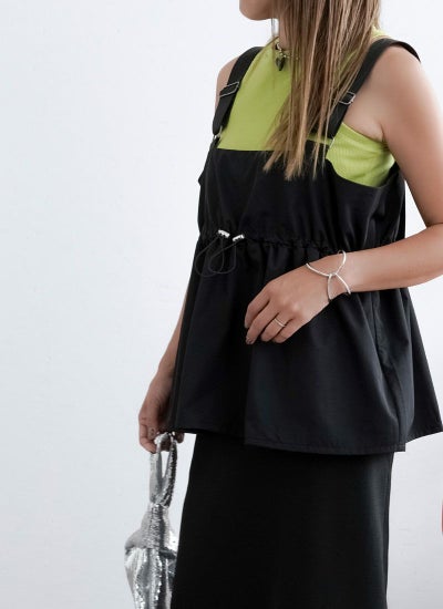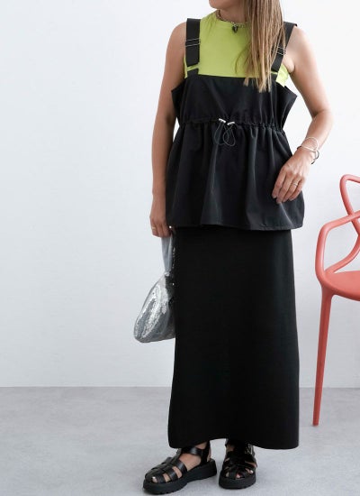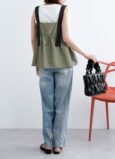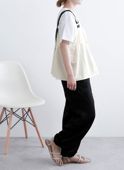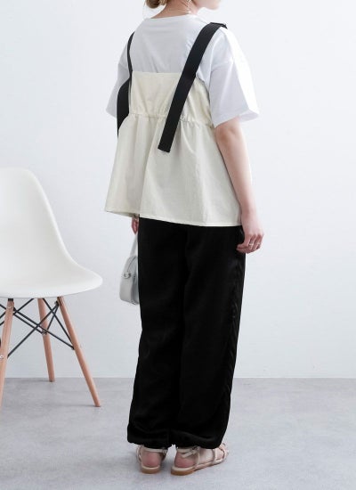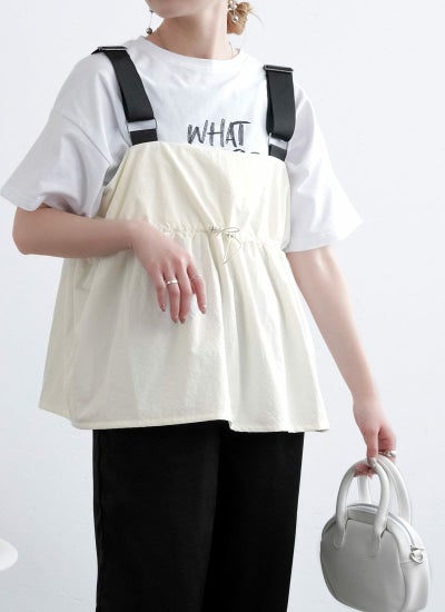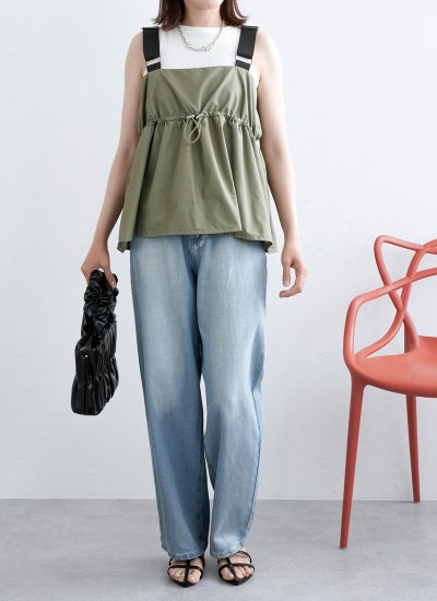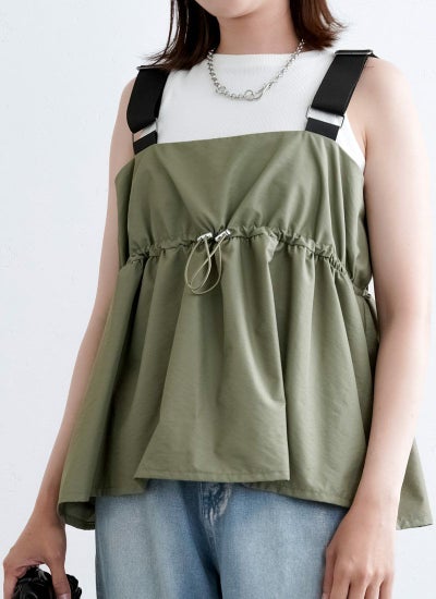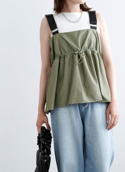太めの配色ベルトがアクセントになったドロストキャミ。