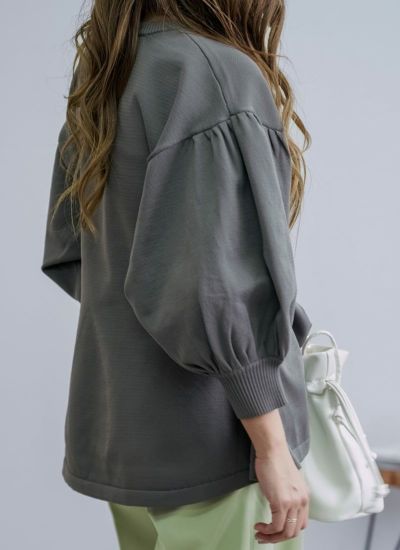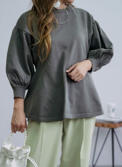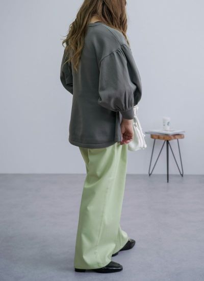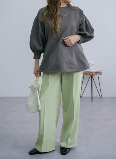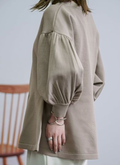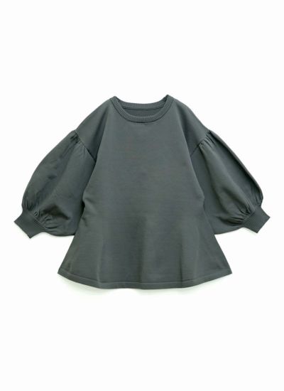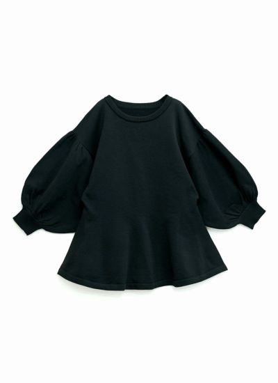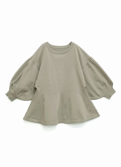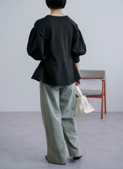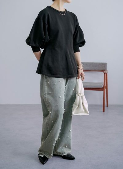 ボリューム袖とペプラムデザインで女性らしい印象に。