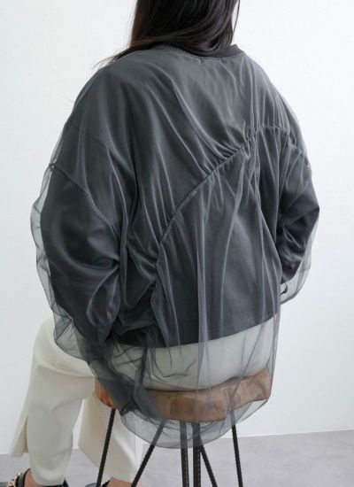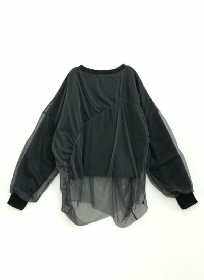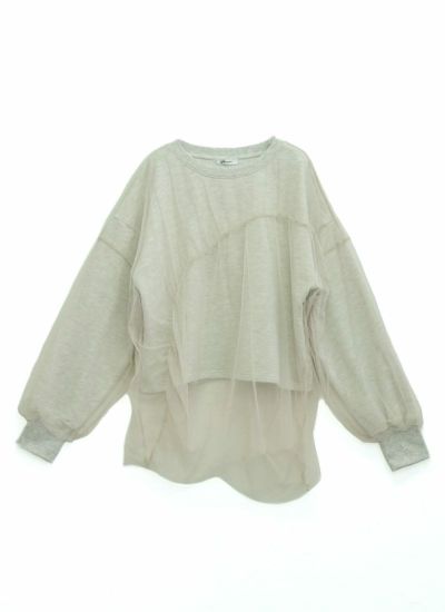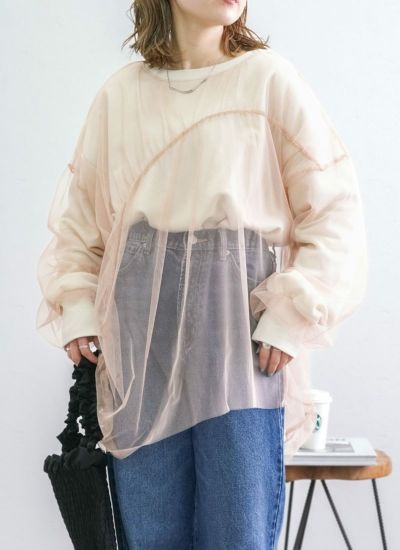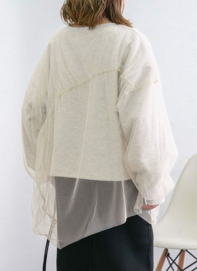 チュールをレイヤードしたデザイン性のある裏毛プルオーバー。