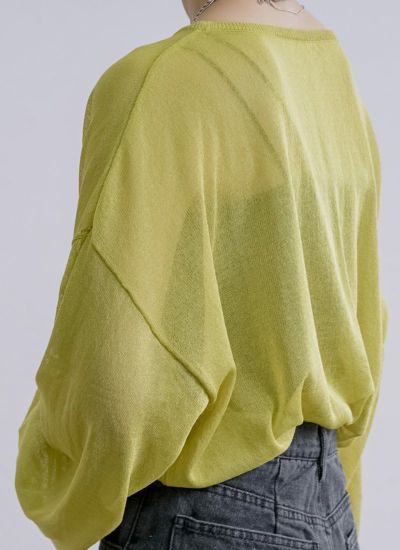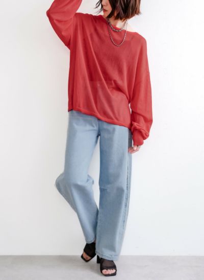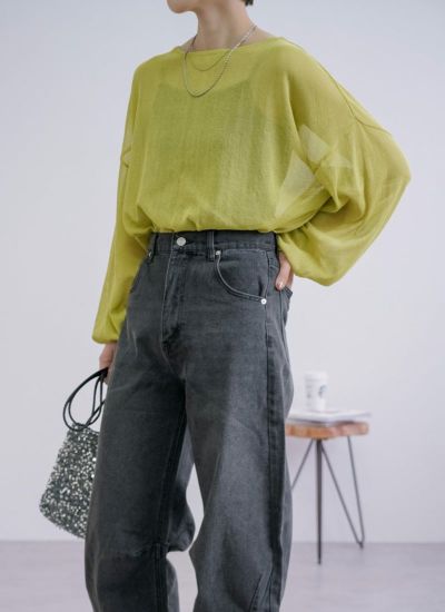 シンプルなデザインで使いやすいシアーのサマーニット。