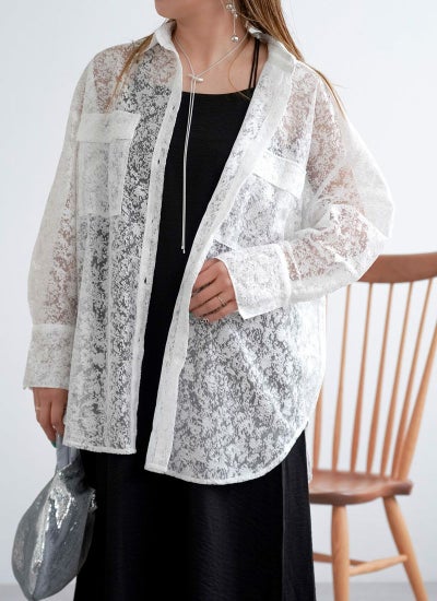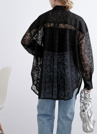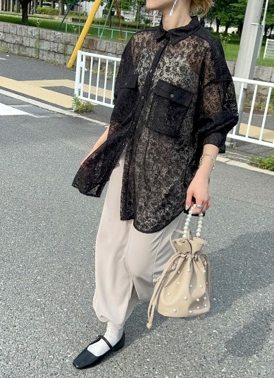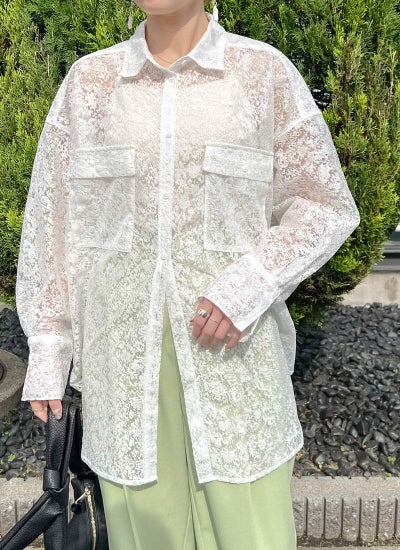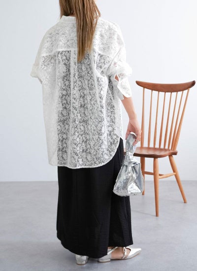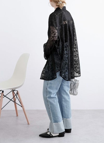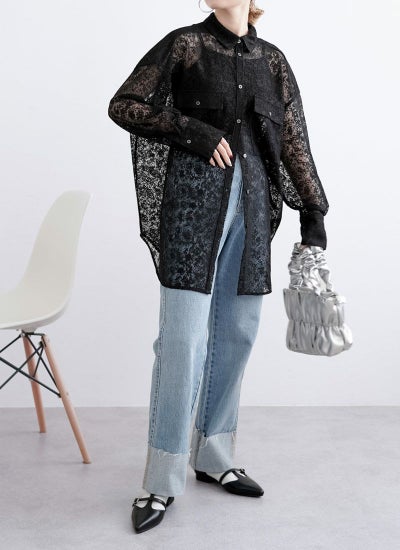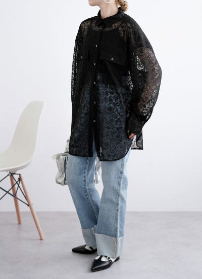 revoam【羽織るだけで今っぽい。レースとシアーの異素材感が映えるトレンド感満載の一枚】 【10%OFF】レースシアービッグシャツ