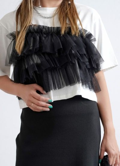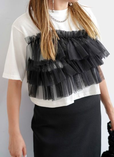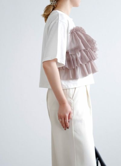 revoam【甘すぎない、大人のチュールT。ふんわり感×短丈で、今っぽバランス】 【35%OFF】チュールドッキングクロップドTee