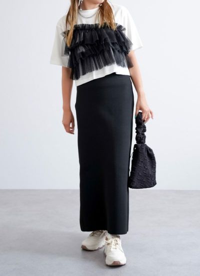 ボリュームのあるチュールがコーデに立体感をプラスしてくれます。