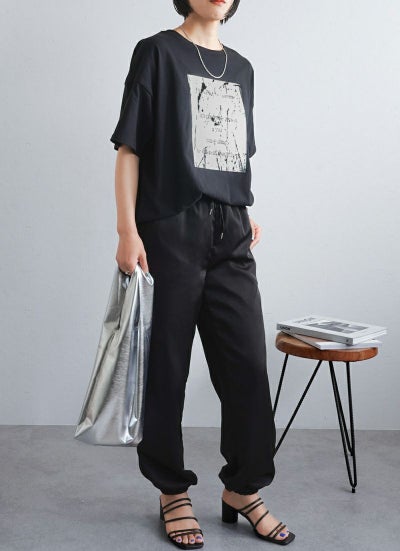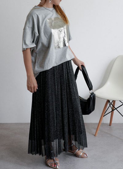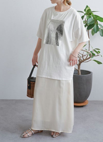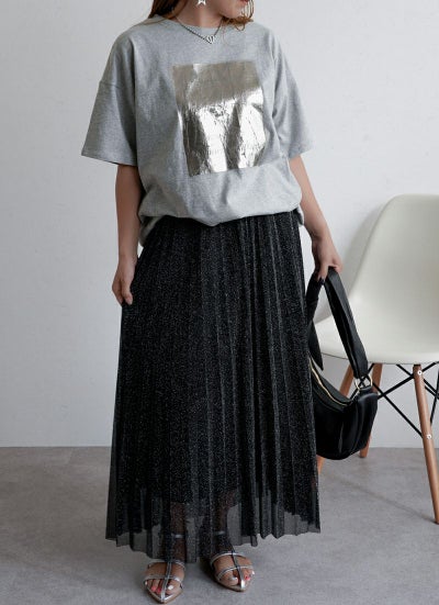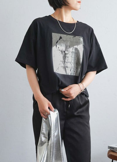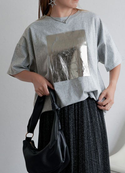 シルバーのメタリックな輝きを、Tシャツで気軽に取り入れられるのが魅力です。