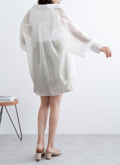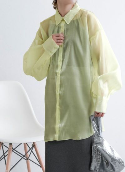 revoam【透け感とラメの上品なバランスで、大人の“こなれ感”を演出。羽織るだけで季節を先取りする、オーガンジーシャツ】 【10%OFF】ラメオーガンジーシャツ