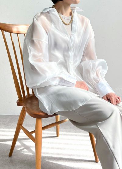 程よい透け感と光沢感で綺麗目スタイルにも。