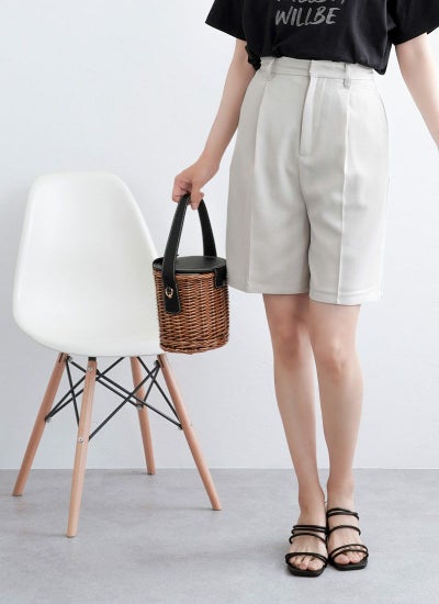 元気なイメージのハーフパンツも落ち感のあるエステルツイル生地で大人っぽく。