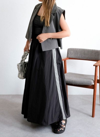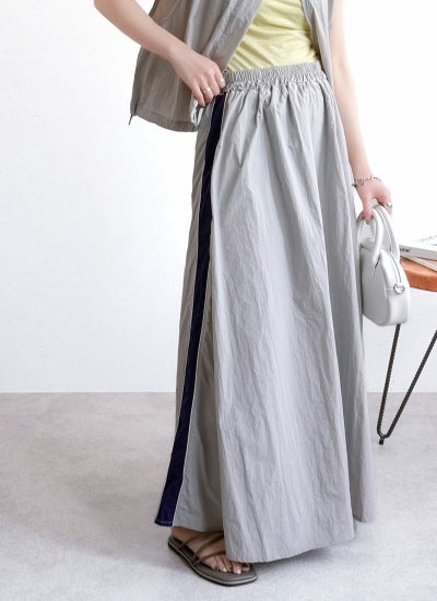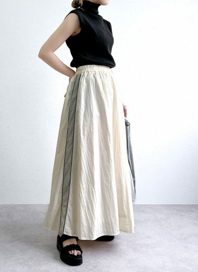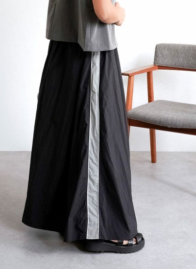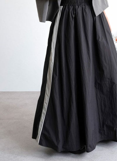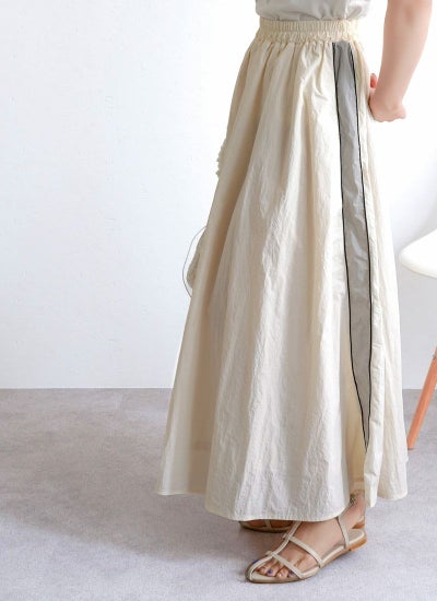 revoam【着こなし広がる旬顔スカート。サイドラインがつくる縦ラインでスタイルアップ見え】 【15%OFF】ナイロンサイドラインフレアスカート