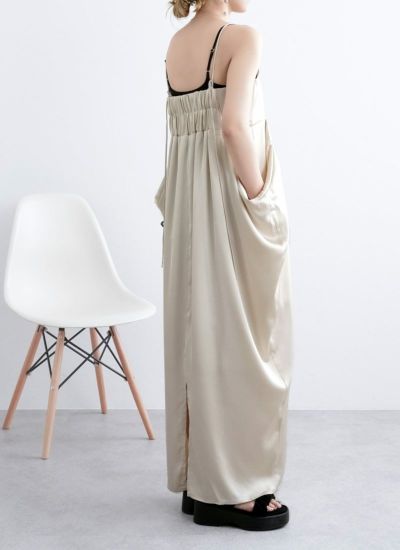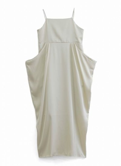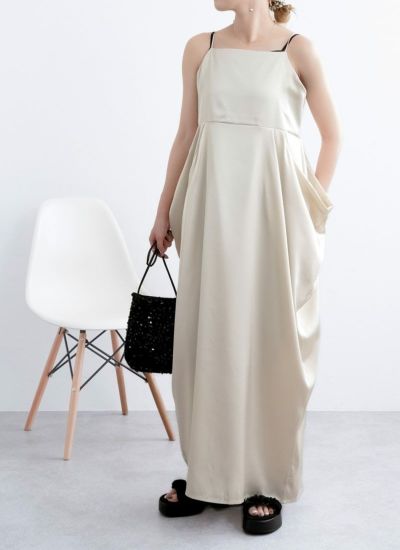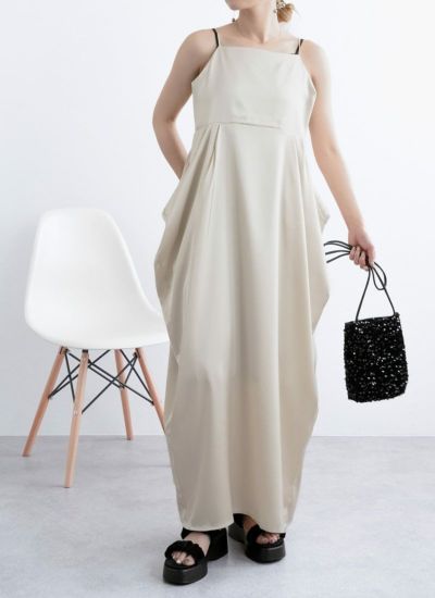 サイドのボリュームたっぷりなドレープポケットがアクセントのキャミワンピース。