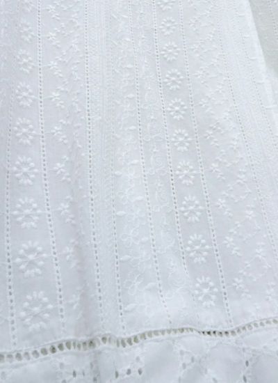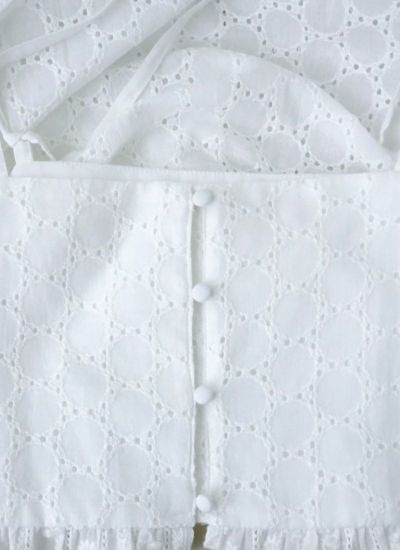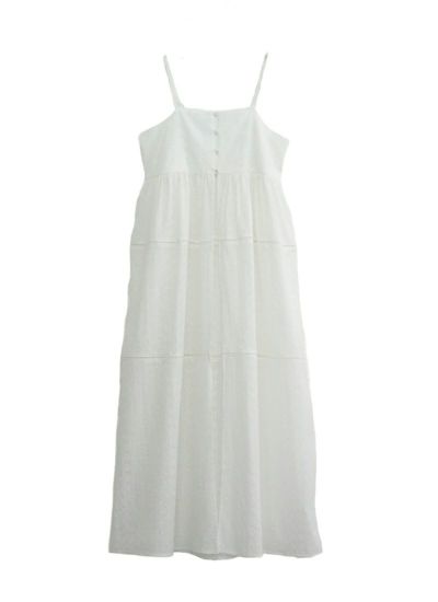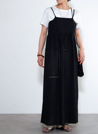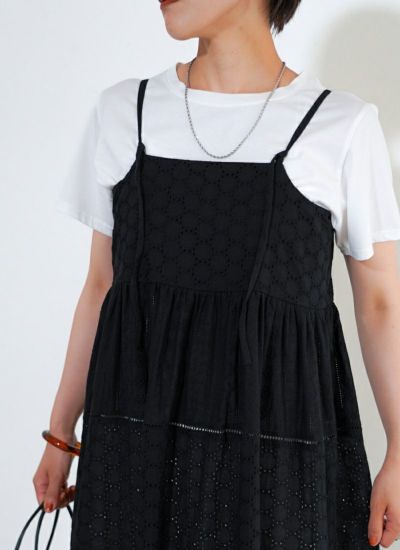 小さな穴の開いたアイレットレースにナチュラルなコットンレースのキャミワンピース。