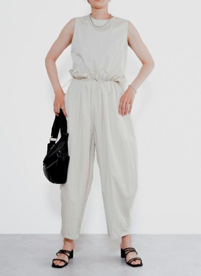 revoam【たっぷりギャザーで、ゆるっと可愛い。楽ちんシルエットなのに、こなれ感たっぷりの旬オールインワン】 【30%OFF】タフタギャザーコクーン オールインワン