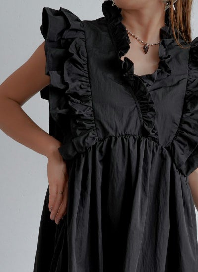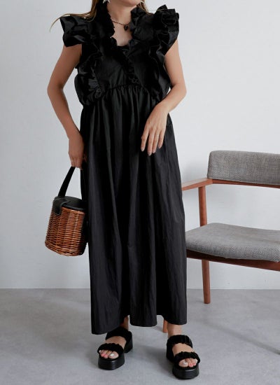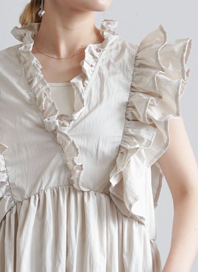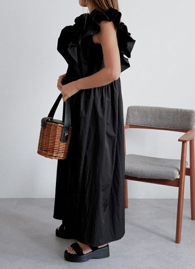 タフタの素材感が魅力のフリルノースリーブワンピース。