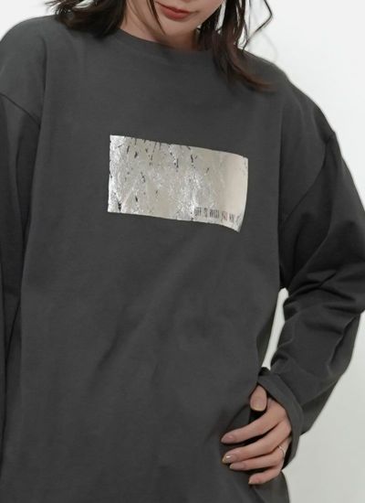 revoam【きらめく箔プリントが主役。大人モードなオーバーサイズTee】 オーバーサイズ箔プリントロンTee