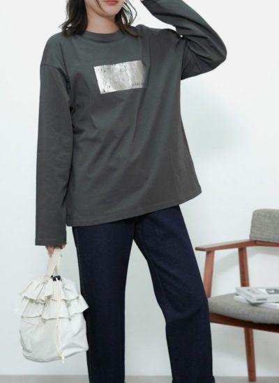 箔押しのプリントが可愛いビッグサイズロングtシャツ。