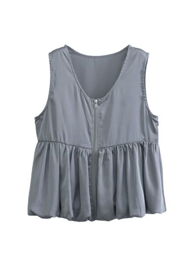 【新作おすすめ】 【20%OFF】サテンフロントジップバルーンベスト