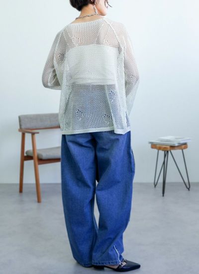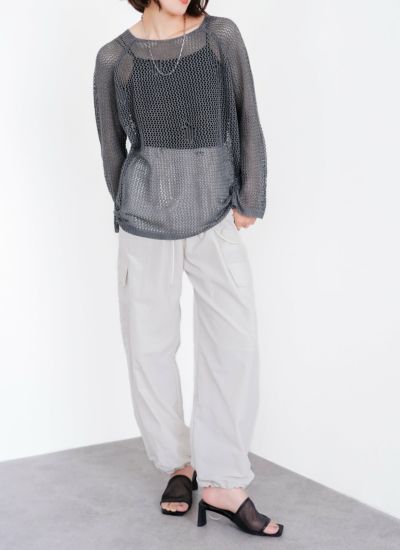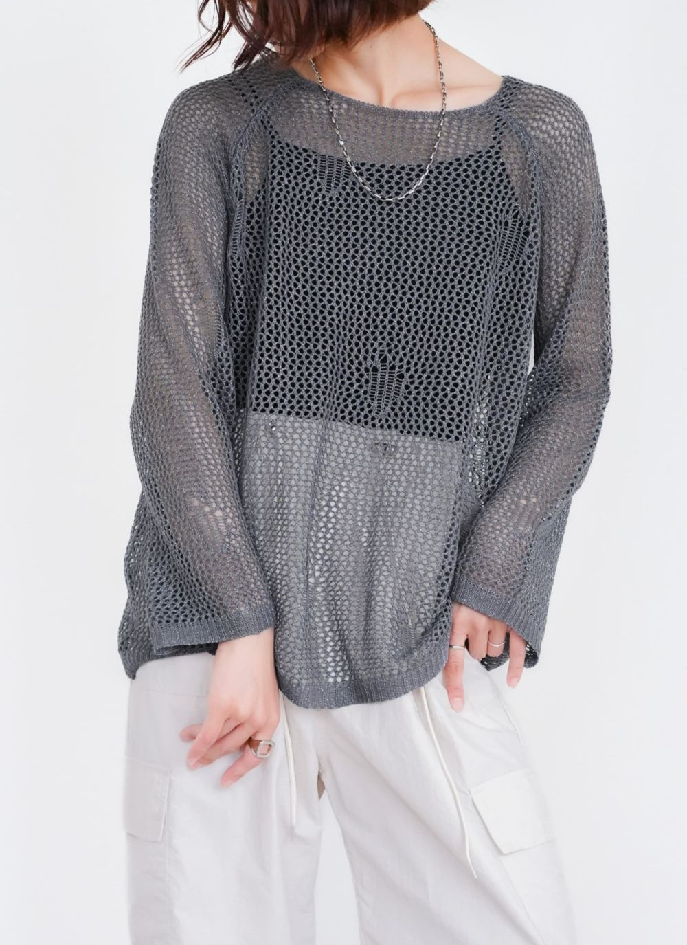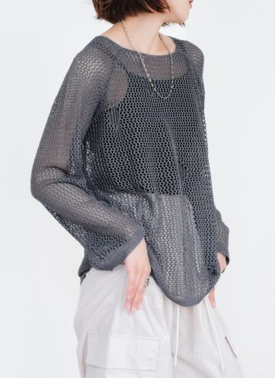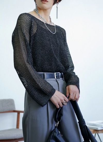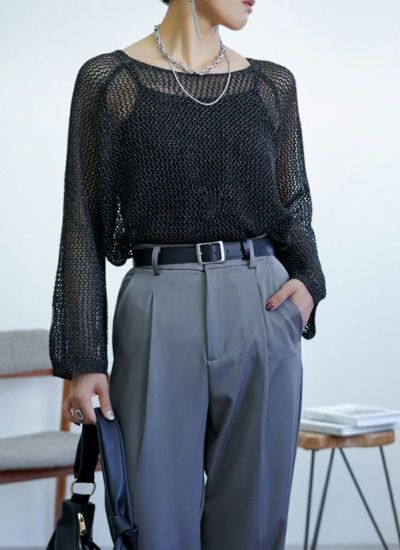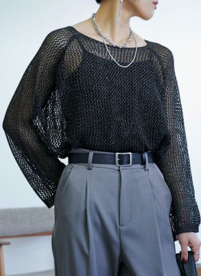 程よい透かし編みが大人っぽく着こなせるメッシュニットに