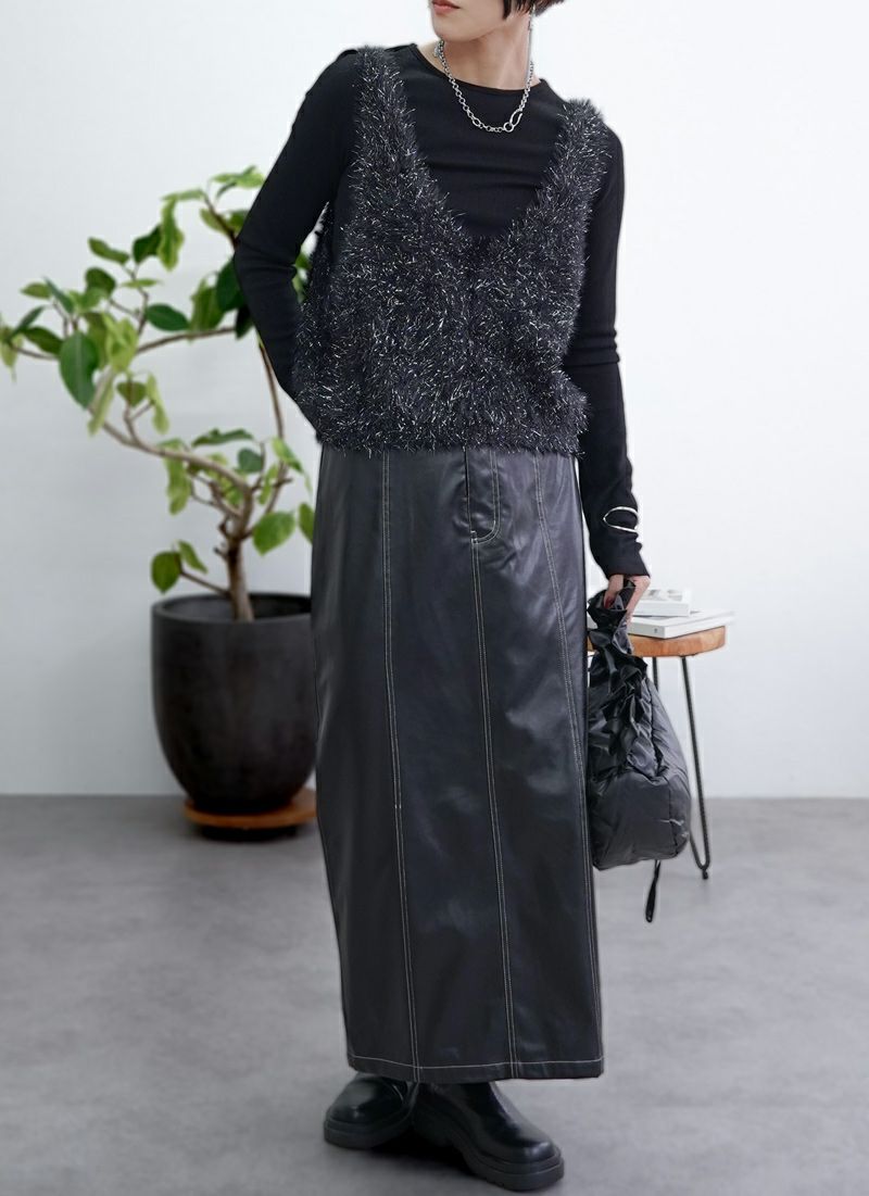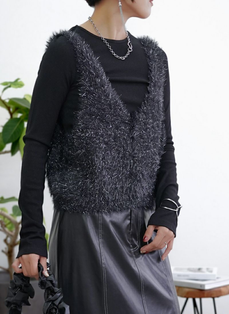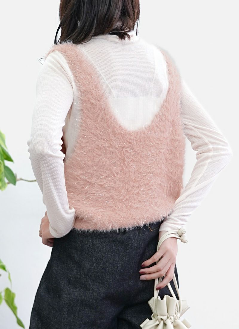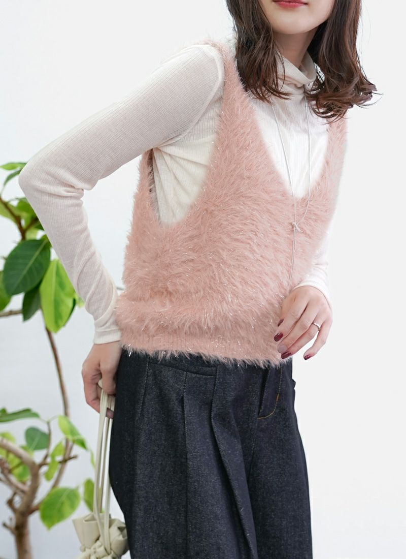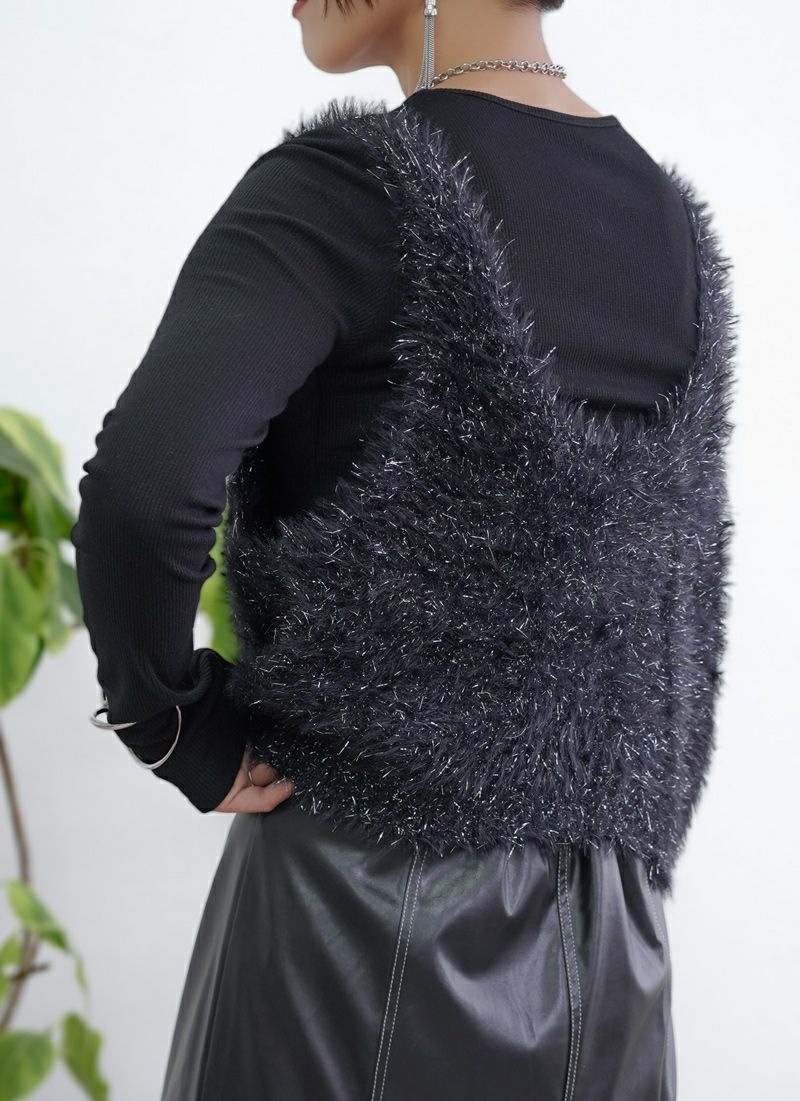ふんわりとした手触りのラメ入りフェザー素材がトレンド感を後押し。
