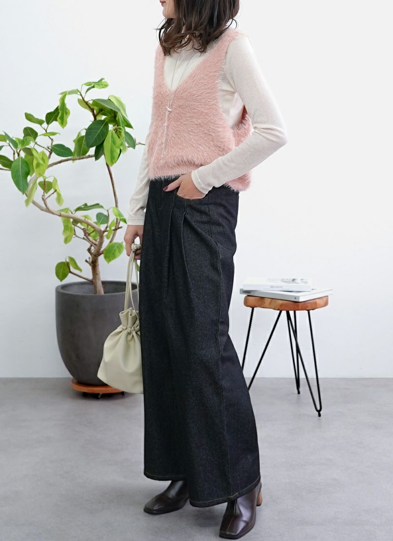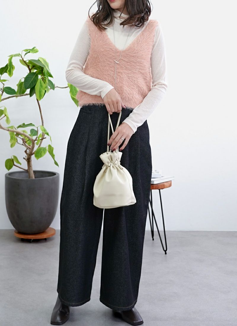 短めの着丈なので、ハイウエストボトムとも好相性。