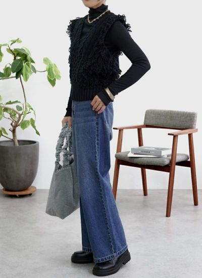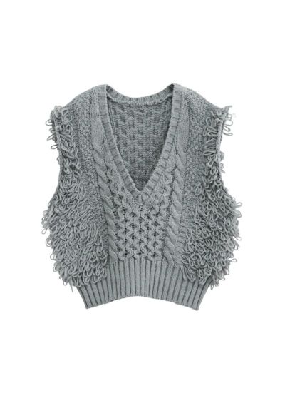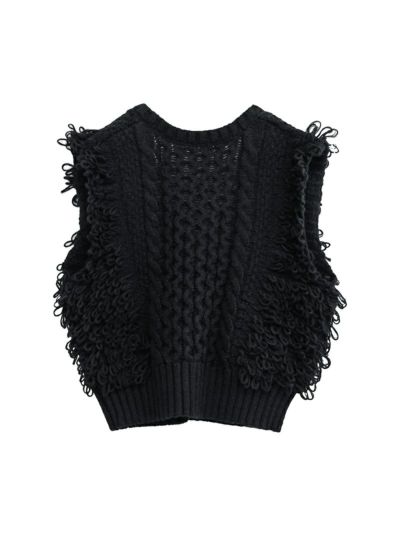 トレンドのフリンジループデザインが印象的なニットベスト。